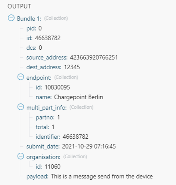When you want to send an SMS from the device to your application, your device should send the SMS to an invalid MSISDN with seven digits or less.