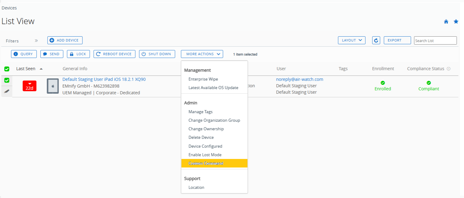For more information, see Introduction to Managing iOS Devices. - Browsers: For a list of supported browsers, refer to Working in the UEM Console.