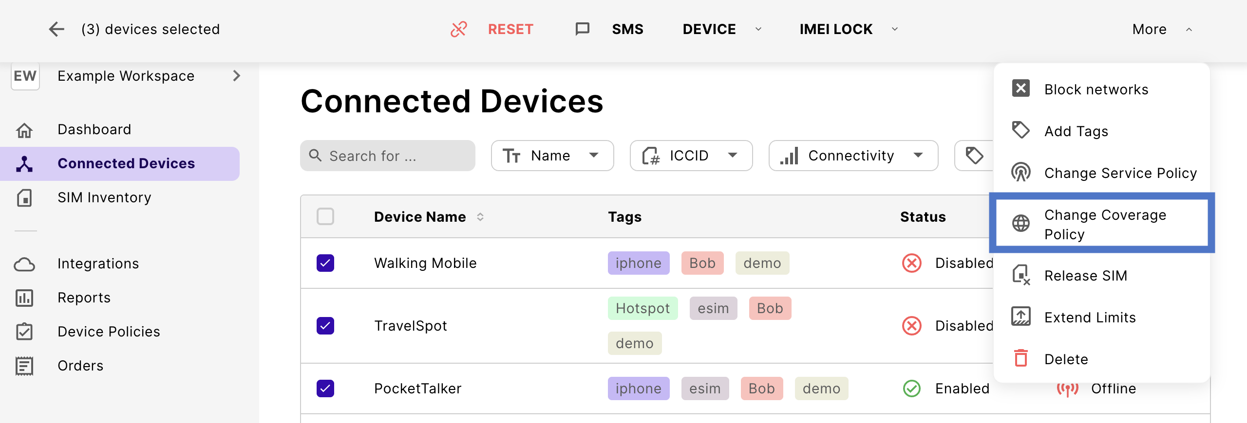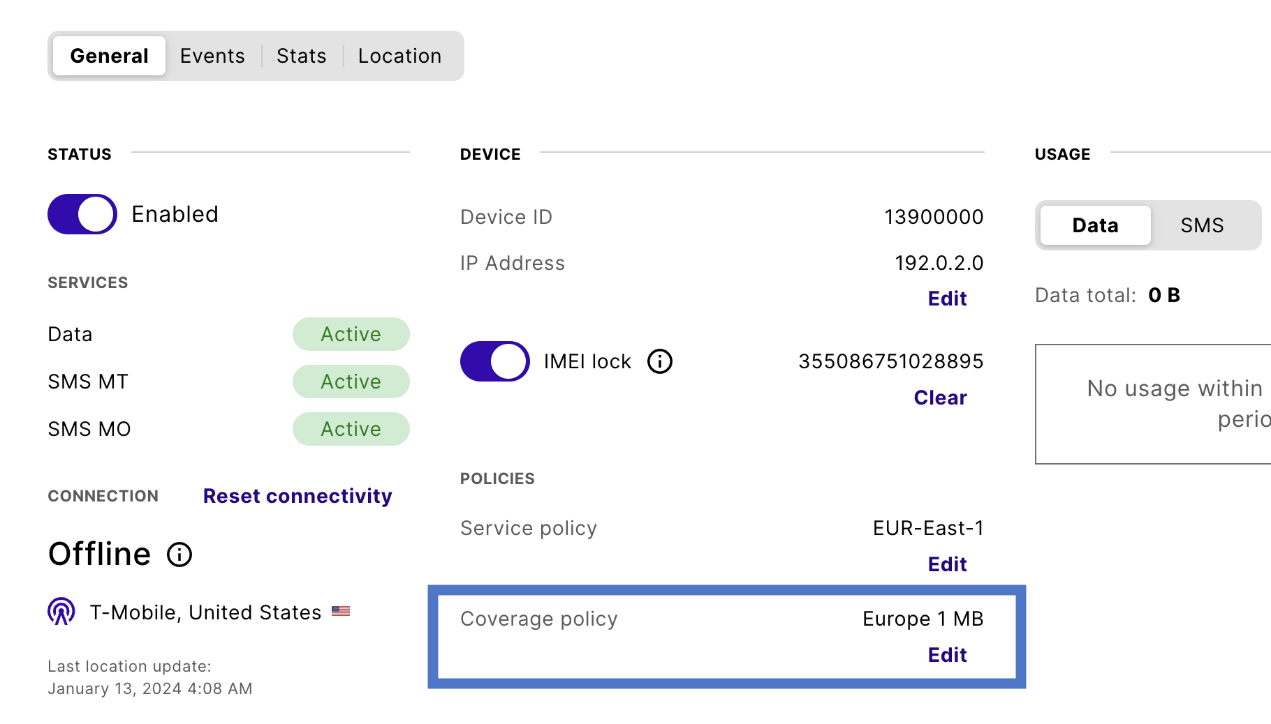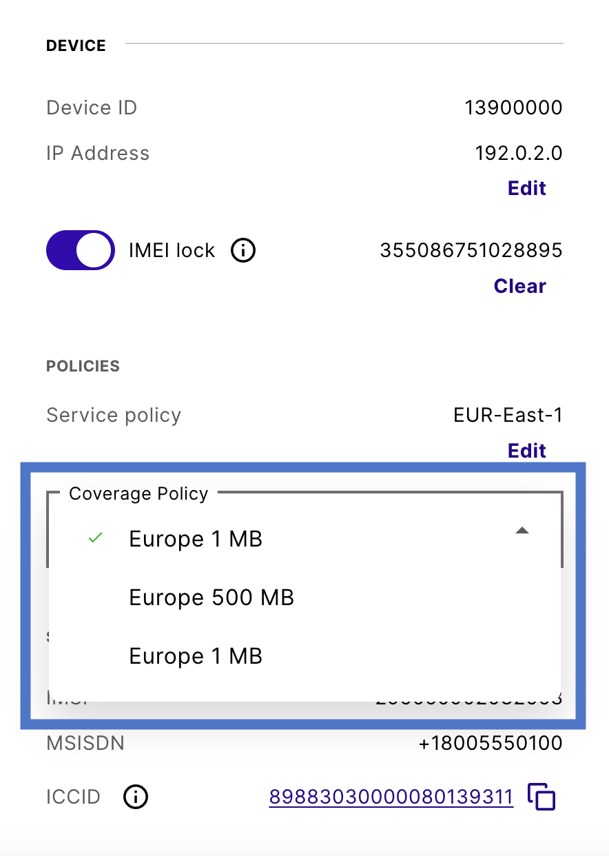 Once configured, you need to add a data allowance for your coverage policies to use them with devices.